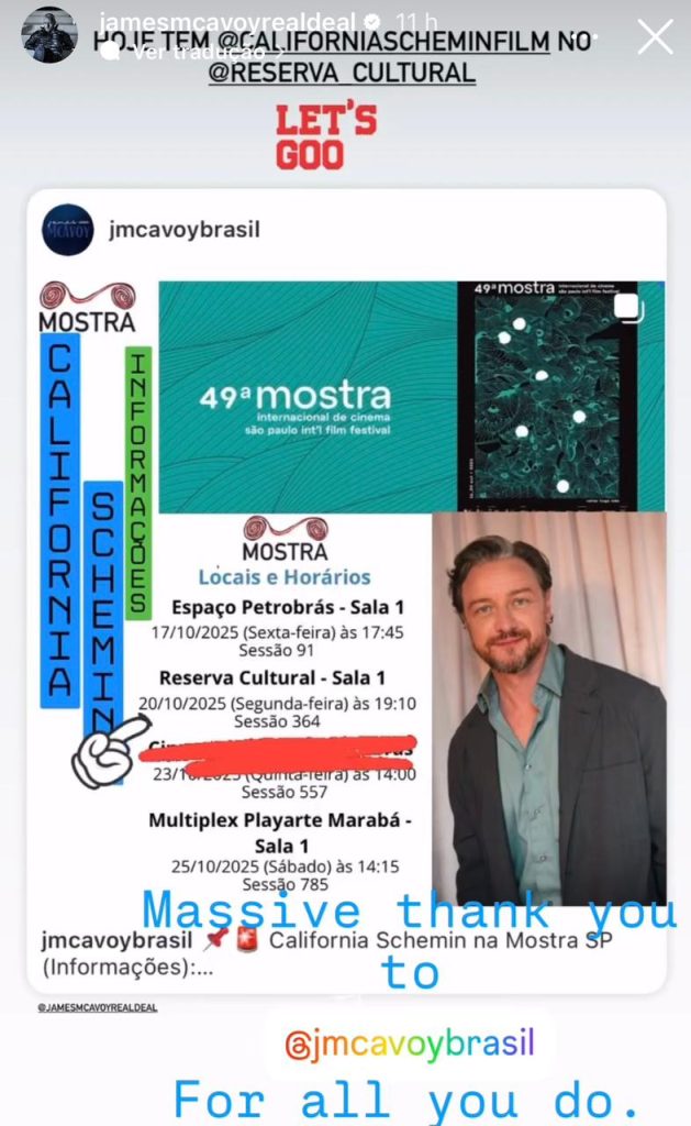 É um sonho, poder receber esse carinho do James McAvoy , com significado imenso, pessoalmente pra mim, Regiane e para a Aline. Significativo também sobre esta página, por sermos do Brasil, um país distante fisicamente da Escócia e que quando temos essa oportunidade de contato nas grandes ou pequenas coisas nós ficamos tão encantados e muitas vezes achamos que nossas “vozes” não chegam com tanta força, mas, que bom quando a gente descobre que estamos enganadas!!