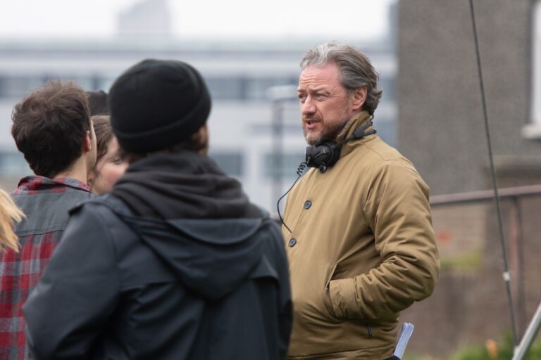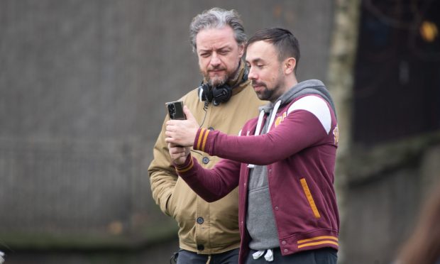 Via The Courier – James McAvoy e sua produção retornaram ao conjunto de moradias ( “os ‘multis’) de Hilltown, em Dundee, para capturas de fotos de seu novo filme, California Schemin’.