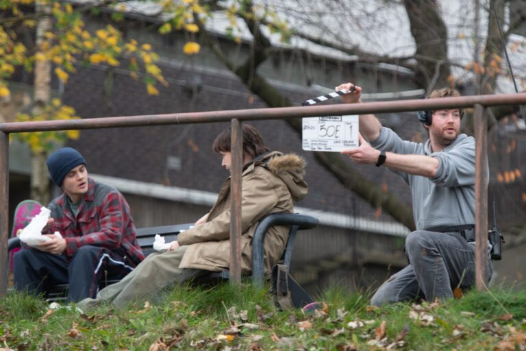 A produção se posicionou nos multis de Hilltown na segunda-feira, onde os atores principais Samuel Bottomley e Seamus Mclean Ross foram vistos gritando de uma janela.