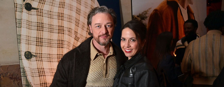 James McAvoy e sua esposa, Lisa Liberati, comparecem ao desfile da coleção masculina Outono/Inverno 2026 da Hermès, na Place de la Bourse,...